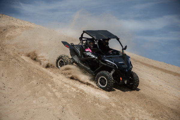 Увеличенный ход задней подвески в 395 мм дает возможность преодоления даже самые сложных препятствий. Внедорожная 29-дюймовая резина на 14-дюймовых легкосплавных дисках с бедлоками обеспечивает этому мощному Side-by-side сцепление с любым типом поверхности.