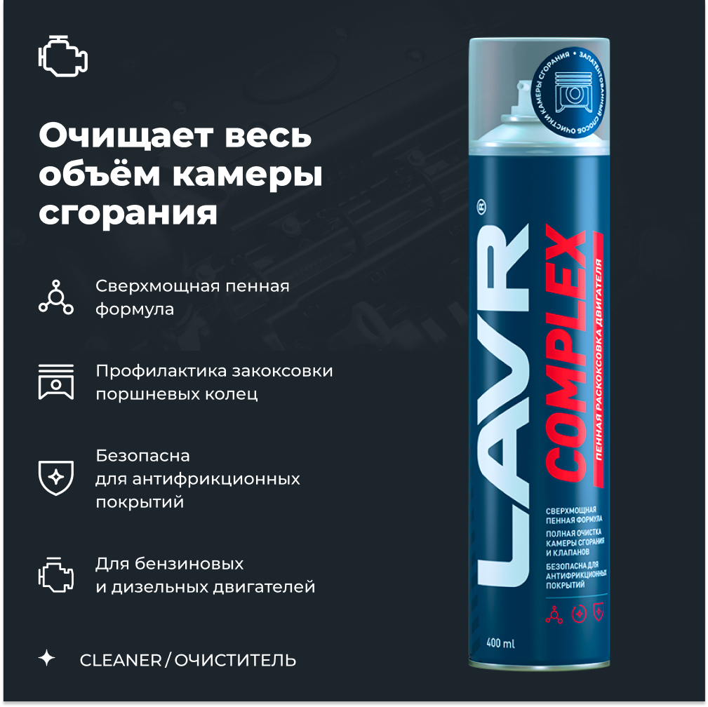 Пенная раскоксовка двигателя Complex LAVR, 400 мл / Ln2510