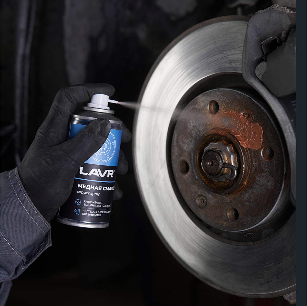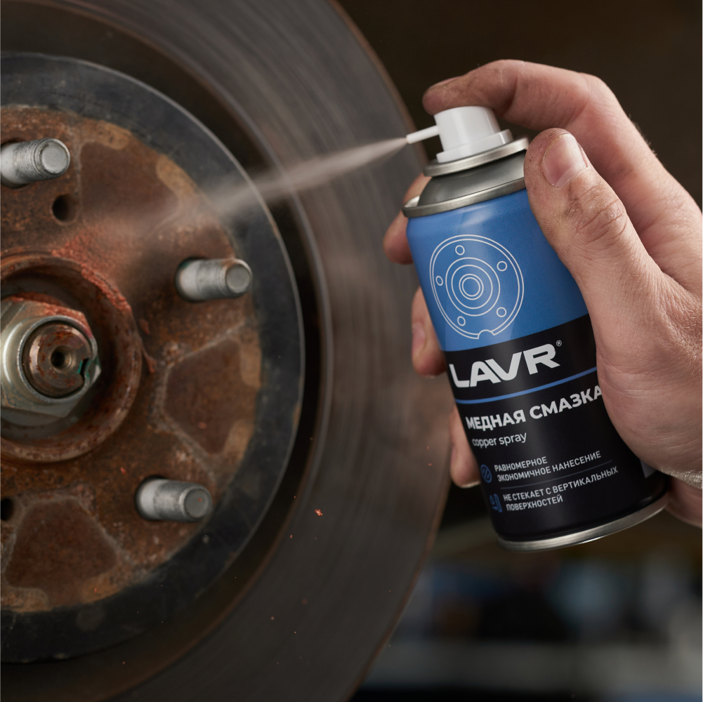 Смазка в формате аэрозоля с повышенным содержанием медного порошка предотвращает прикипание, сваривание и коррозию термонагруженных деталей. Применяется для обработки резьбовых соединений выхлопной и тормозной систем, болтов и шпилек ступиц колес, свечей зажигания и накаливания.