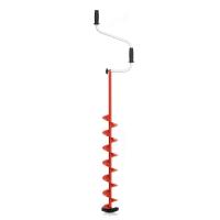 Верхняя рукоятка ледобура смещена относительно оси ледобура на 105 мм, а нижняя на 165 мм. Такое расположение рукояток позволяет вращать ледобур одновременно двумя руками, тем самым увеличивая скорость бурения лунок во льду.